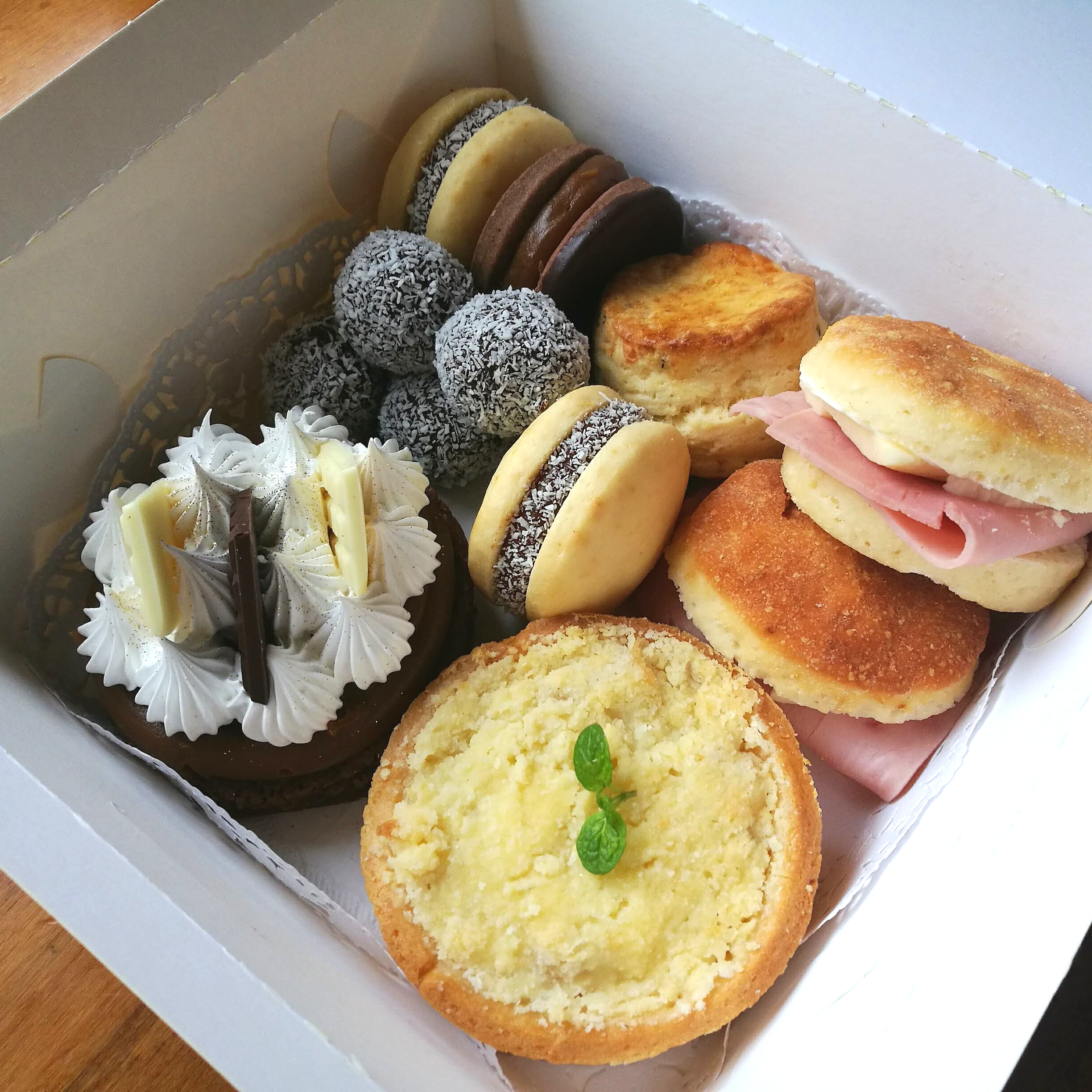 Variadas selección de alfajores, minicakes, scons dulces y salados, sandwichs, trufas y otras opciones de temporada